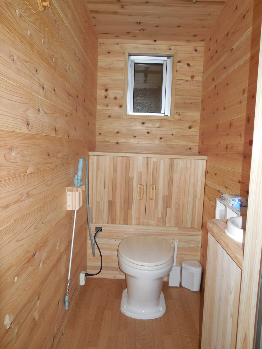 また女性に配慮し、便器洗浄用ノズルや鏡や手洗いを設置いたしました。